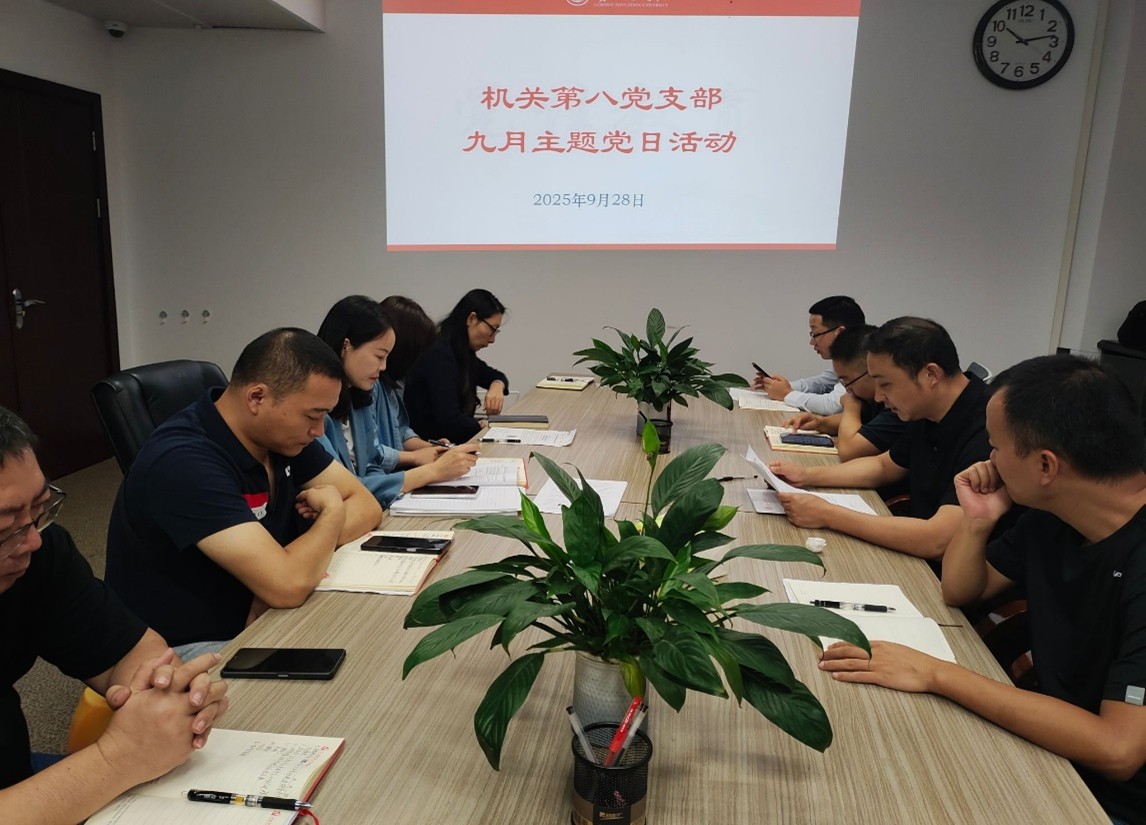 9月28日,机关第八党支部开展9月份主题党日活动,活动主题是“深入贯彻中央八项规定精神学习教育专题研讨暨学习教育总结会”。活动由党支部书记田茂军主持,党支部全体党员参加。